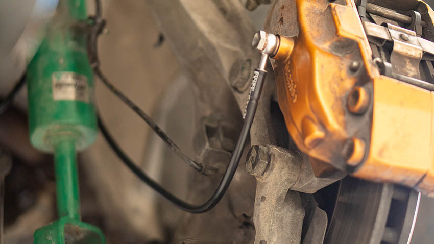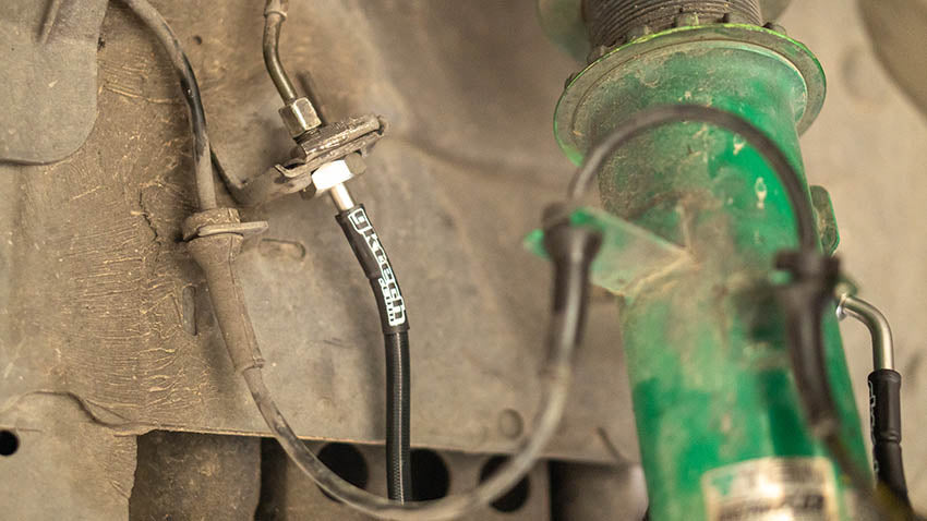 We have included a custom machined brake line block which sits in the OEM location which eliminates one long line which has tendencies to get caught on the tire or other suspension components. This piece keeps the brake lines short and concise.